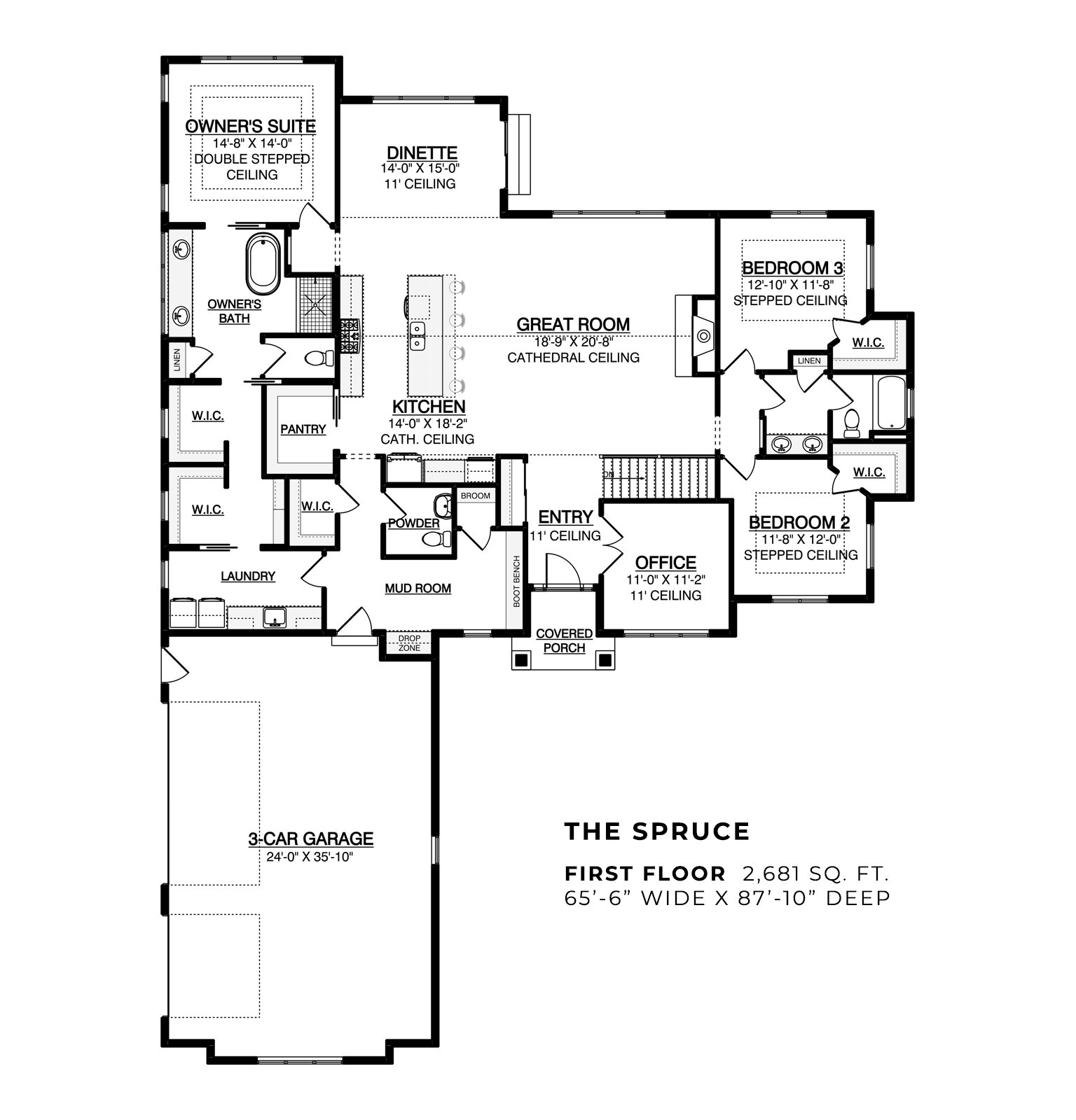 Espire Homes is thrilled to unveil The Spruce, a blend of all the popular elements of our ranch portfolio of homes. This split-bedroom ranch has a distinct, eye-catching exterior accented with cedar columns, stone, a hip-roof, and 3-car garage.