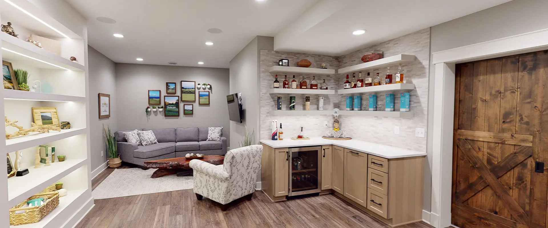 Our award-winning team is proud to present this transformed lower level—now an inviting entertainment space, thoughtfully designed for gathering with friends and family